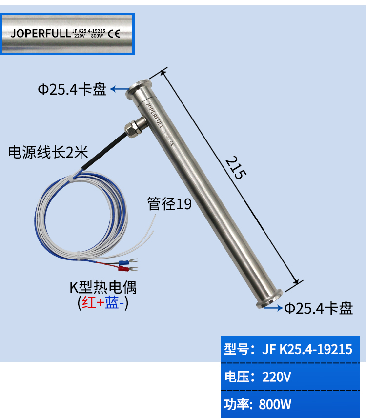 炬丰电气JF K25.4-19 卡盘管道加热风枪加热管快速升温自动化机械
